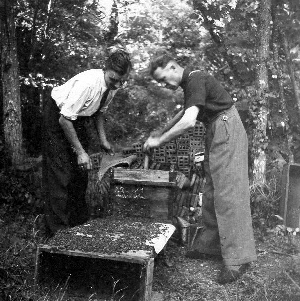 (Ci-dessus, Odette et André Pommereau, fondateurs des Établissements Apicoles du Gâtinais, à Pithiviers le Vieil)