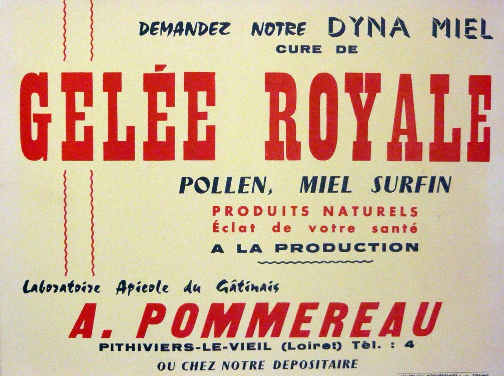 Par la suite, les établissements apicoles du Gâtinais ont diversifié leur production en faisant la promotion de la «Gelée Royale». Cette substance est très riche en vitamines et en oligo-éléments, elle représente une indéniable aide au maintien de la santé.