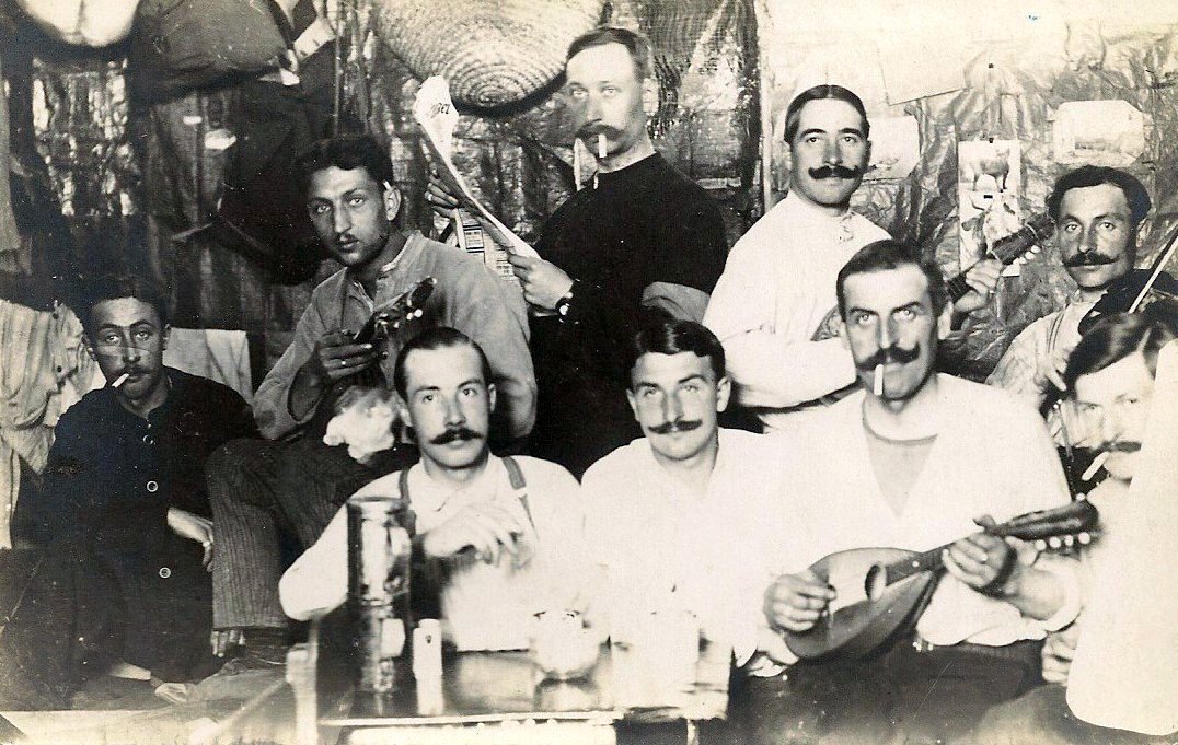 C'est sans doute dans ces circonstances qu'il a été amené à faire partie d'un petit groupe de joueurs de mandoline, comme le montre la photo ci-dessous. Il n'est pas difficile d'imaginer que les distractions étant très rares, les prisonniers « s'évadaient » comme ils le pouvaient, par la lecture ou la musique, d'autant que les conditions de détention étaient très dures.