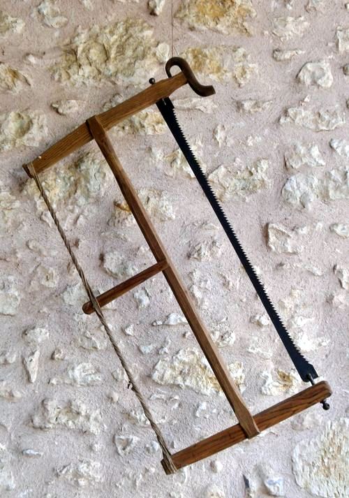 La scie à cadre (à gauche) servait pour des petits travaux ponctuels tandis que la scie à chantourner (à droite) était indispensable pour réaliser des coupes en courbe pour la menuiserie ou la charpente.
