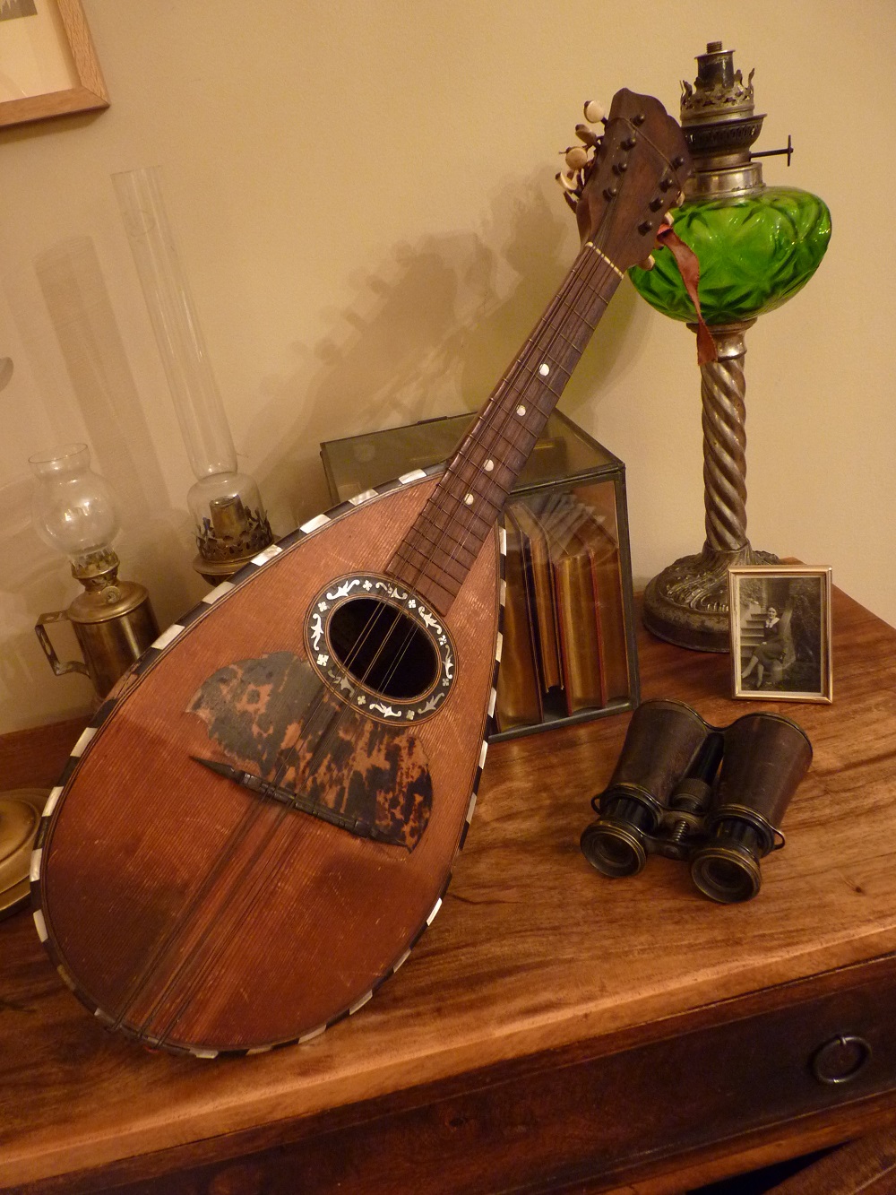 Pour notre connaissance, sachons que la mandoline est originaire d'Italie, et que cet instrument est plus particulièrement connu pour accompagner la musique napolitaine. Celle de notre parent est authentique puisqu'elle a été fabriquée vers 1900 par Luigi Vincentini, artisan luthier établi à Naples.