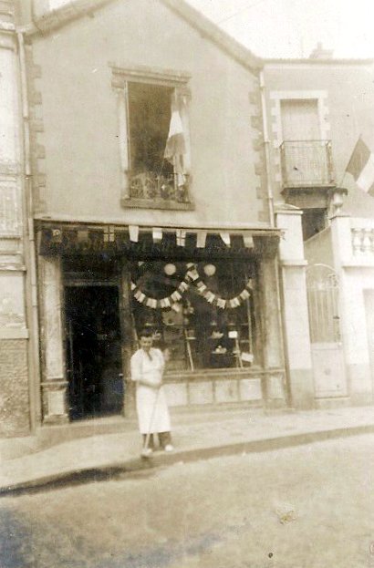 Sous l'occupation, et en raison des risques de bombardement, la boutique s'était ornée de bandes censées protéger des bris de vitres en cas de bombardements (ce n'était pas une fantaisie mais une obligation légale).