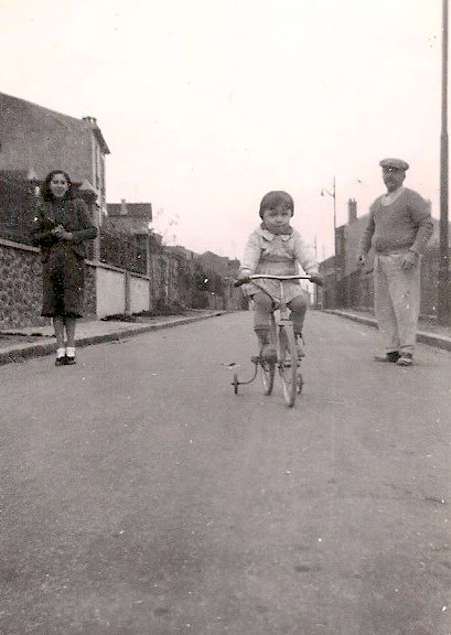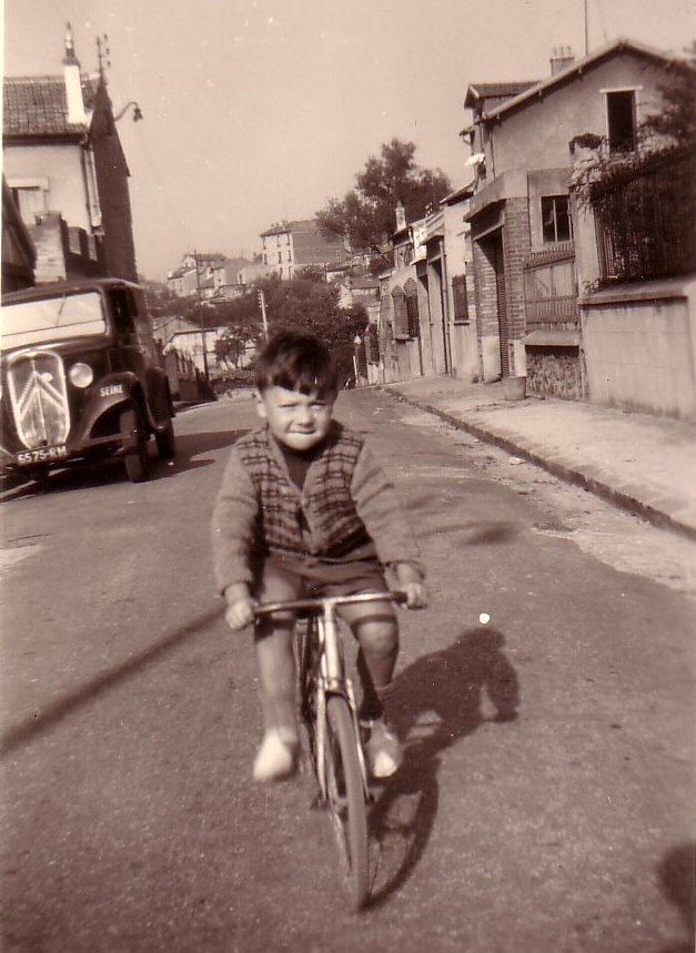 Tout comme Michel quelques années plus tôt, Jean-Claude profitera de la tranquillité de la rue des Prés-Lorets pour faire son apprentissage du vélo. En arrière plan, la camionnette familiale.