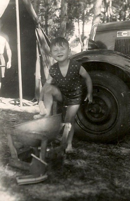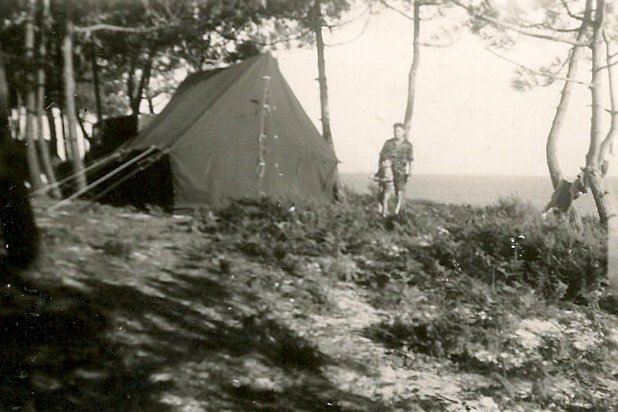Chaque été, la boulangerie fermait pour un mois et nous partions tous les quatre en vacances. Dans un premier temps, il fallait aller à Ramoulu pour y récupérer la tente de camping. Il s'agissait d'une tente achetée aux surplus américains. Dans la cabine de la camionnette, sur l'arrière, se trouvait donc “le Barnum” (à prononcer avec 3 “r”) avec sa mature impressionnante, le matériel de couchage lui aussi d'origine US, un meuble bas fabriqué par Ferdinand avec une vielle caisse, un réchaud, les valises et une bouteille de gaz. Michel et Jean-Claude étaient assis sur une planche à l'arrière en équilibre précaire ! Bien que les séjours aient été spartiates, nous avons toujours eu des vacances heureuses. Certes à l'époque, les questions de confort et de vie ne se posaient pas dans les mêmes termes qu'aujourd'hui, nous sortions en effet de la guerre.