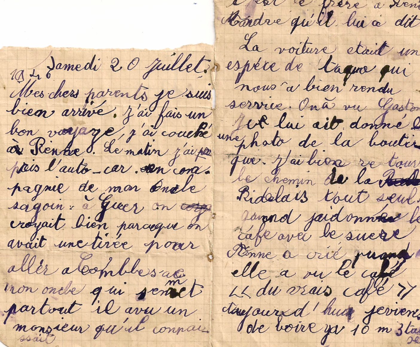 Durant cette période un peu particulière, Michel était parti en vacances chez des parents de notre oncle François Collet à Comblessac (Ille et Vilaine). Au travers de ses lettres, on peut remarquer que son séjour à “la Ridelais” chez la famille Chotard se passera au mieux !