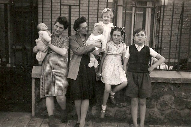 Sur ce cliché de 1946, de gauche à droite : Suzanne avec Jean-Claude, Raymonde avec Geneviève, Françoise avec Claude derrière elle, et Jean Coudeyrette