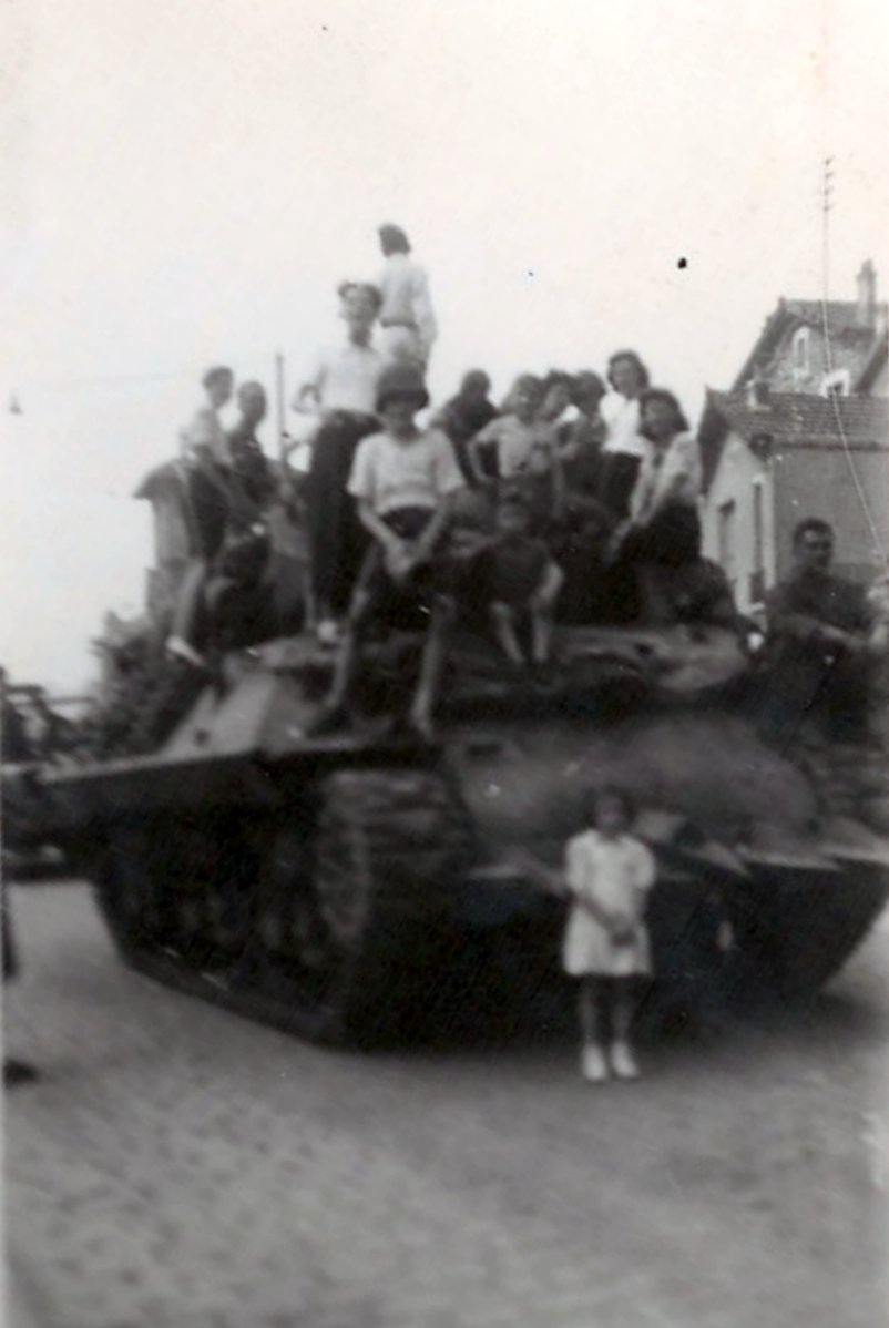 Sur les traces des soldats Allemands, les premiers GI sont passés remontant l'avenue de la République comme en témoigne ces clichés de l'époque. Tout le monde voulait voir et fêter “les Libérateurs”. Michel ne sera pas le dernier à grimper sur le Tank destroyer que l'on voit ici, à droite.
