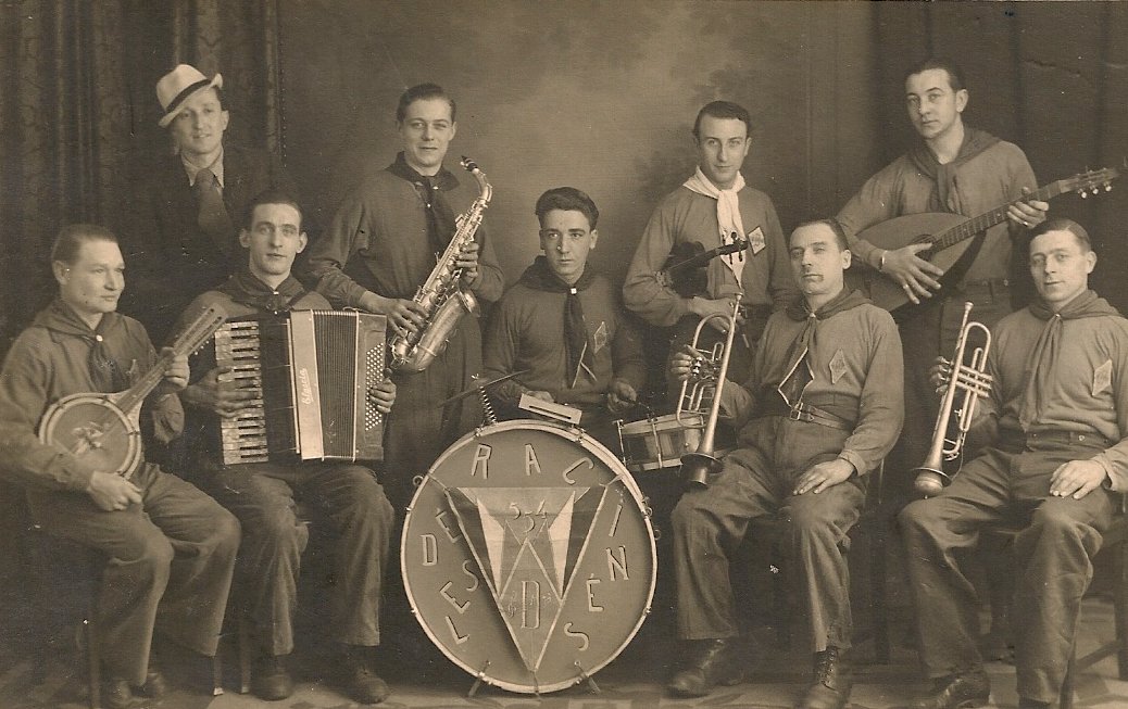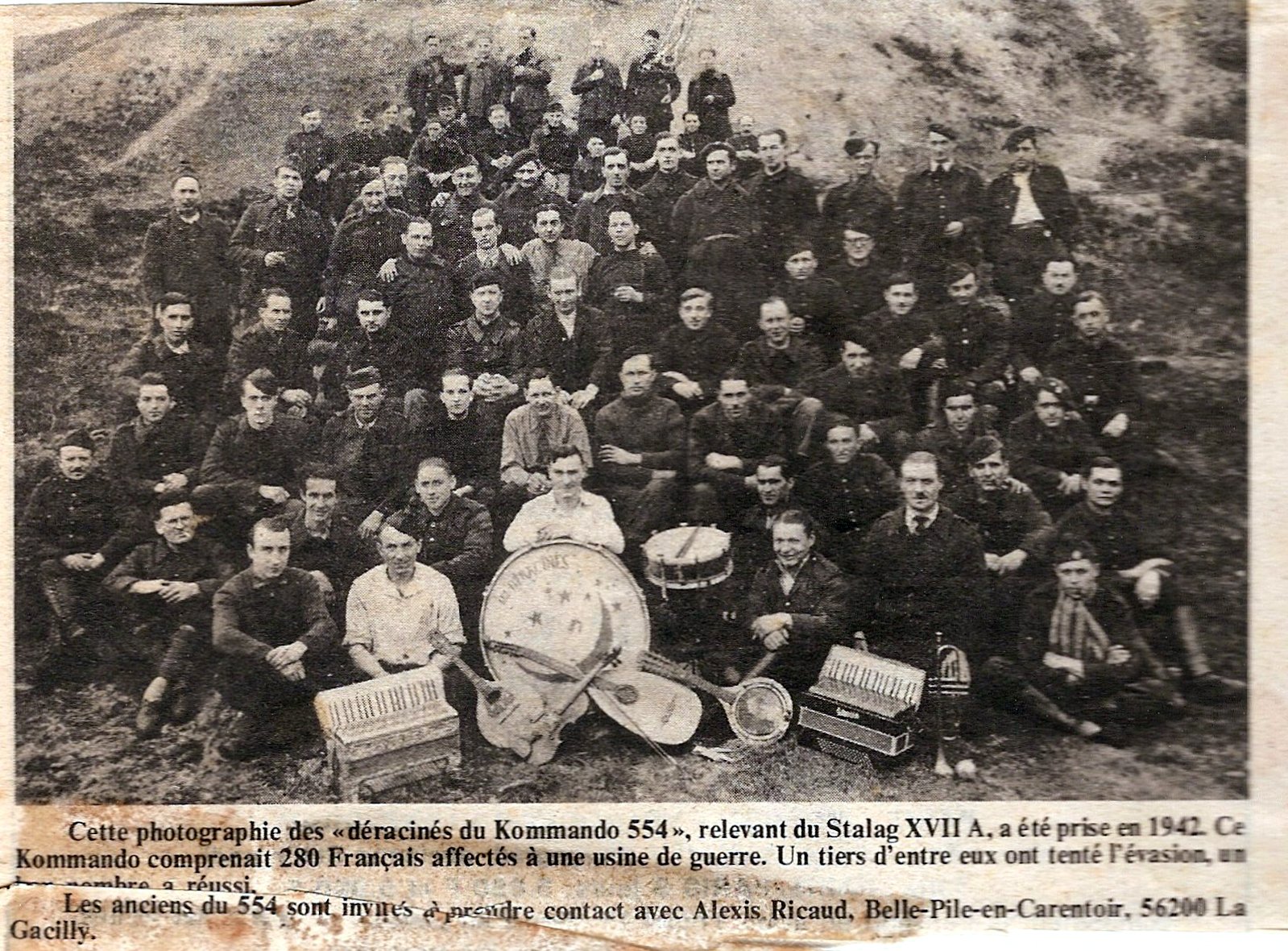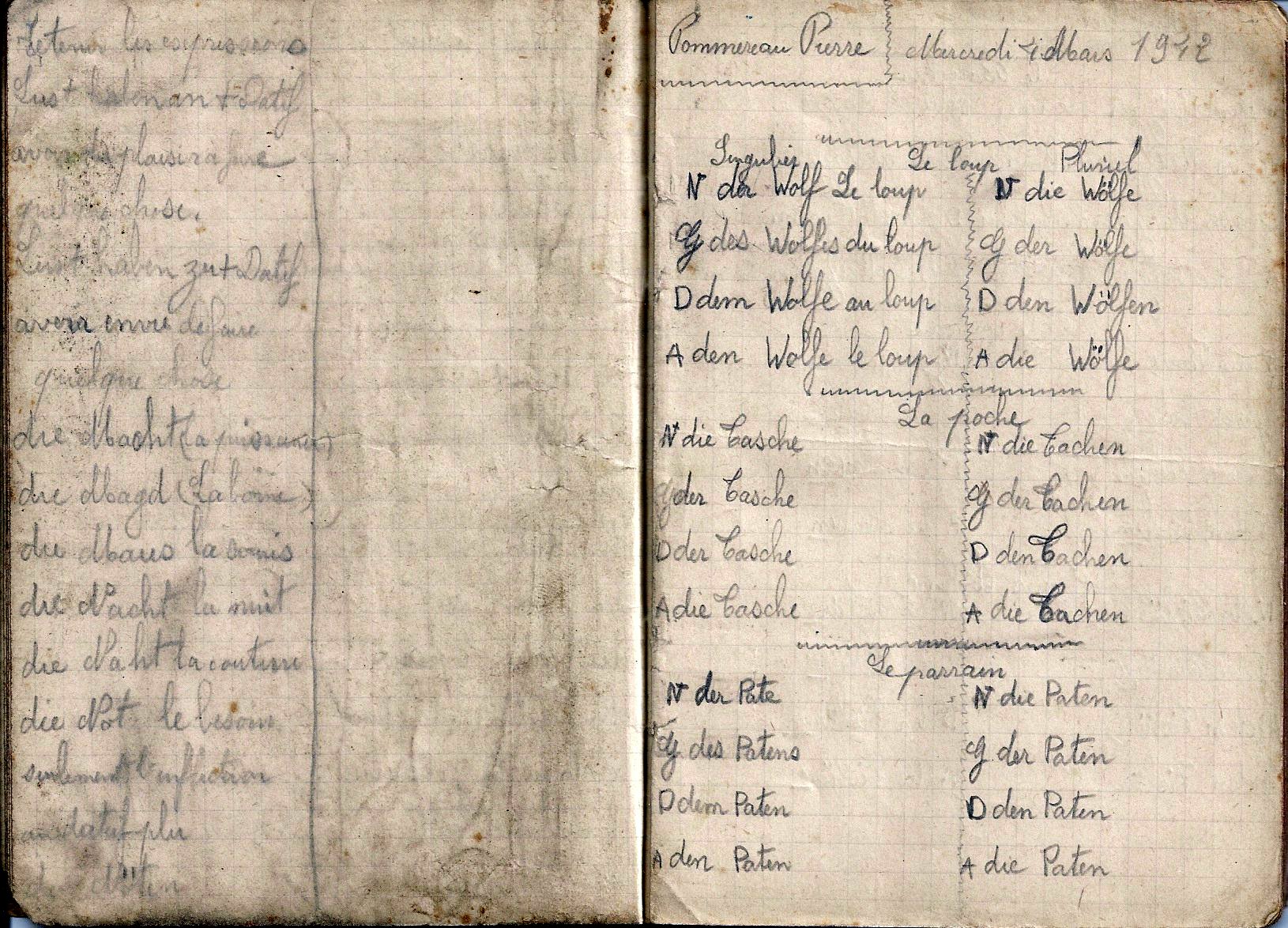 Ci-dessous le carnet de vocabulaire de Pierre et à droite l'orchestre «les Déracinés»