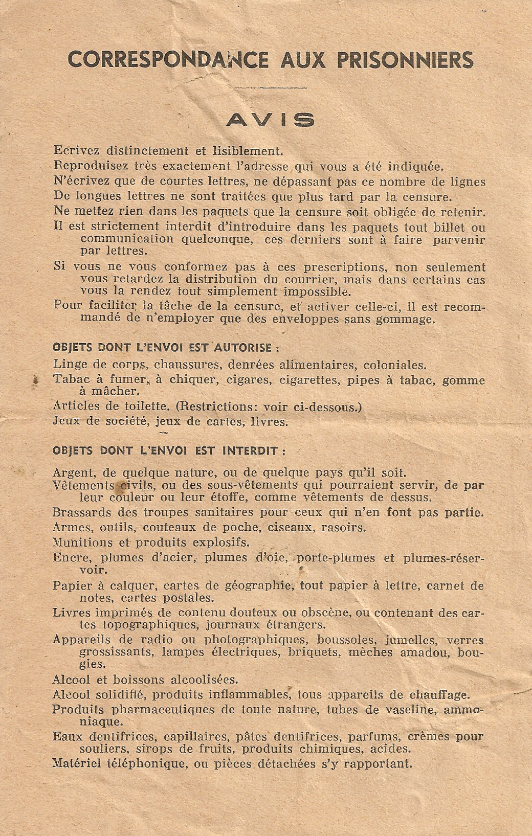 Seul le courrier permettait de garder un lien avec la famille et avec le Pays. Le nombre de lettres et de colis était contingenté et une réglementation drastique énumérait les choses qui étaient interdites de faire parvenir aux prisonniers.. Comme pour toute personne privée de liberté, la remise et la lecture du courrier étaient un moment capital que chacun vivait à sa façon, soit en partageant les nouvelles ou en s'isolant…..Le courrier étant soumis à la censure, papa ne pouvait qu'échanger des banalités avec la famille. Les lettres devaient être rédigées au crayon papier sur des enveloppes dédiées qui ne laissaient que peu de place à l'écriture.