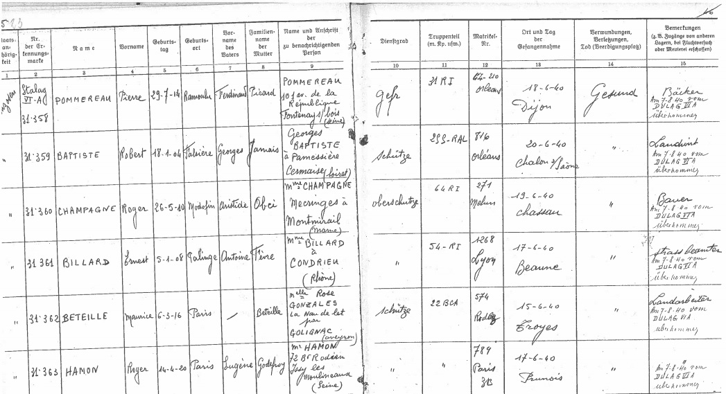 De fait, Pierre Pommereau a été fait prisonnier, le 17 juin, au Val Suzon (Côte d'Or), puis transféré dans le « Frontstalag » de Dijon avant son départ pour l'Allemagne.