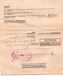 1940: Camp de Hemer, puis Lemgo où il Travaille dans une scierie « Arbeits Kommando 206 », ensuite dans une fabrique de meubles. La vie au camp de Hemer était dure et le départ en Kommando a été vécu comme un soulagement.