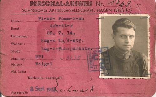 A Hagen, Pierre Pommereau a été employé à l'usine Schmiedag AG comme ouvrier sur machine outil, alors que dans le civil il était artisan boulanger ! Dans cette usine étaient fabriqués, entre autres, des ponts arrière de chars et des freins de bouche de canon (souvenirs de Papa), ce qui était contraire aux dispositions de la Convention de La Haye.