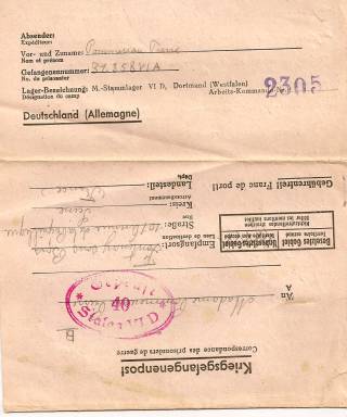 1940: Camp de Hemer, puis Lemgo où il Travaille dans une scierie « Arbeits Kommando 206 », ensuite dans une fabrique de meubles. La vie au camp de Hemer était dure et le départ en Kommando a été vécu comme un soulagement.